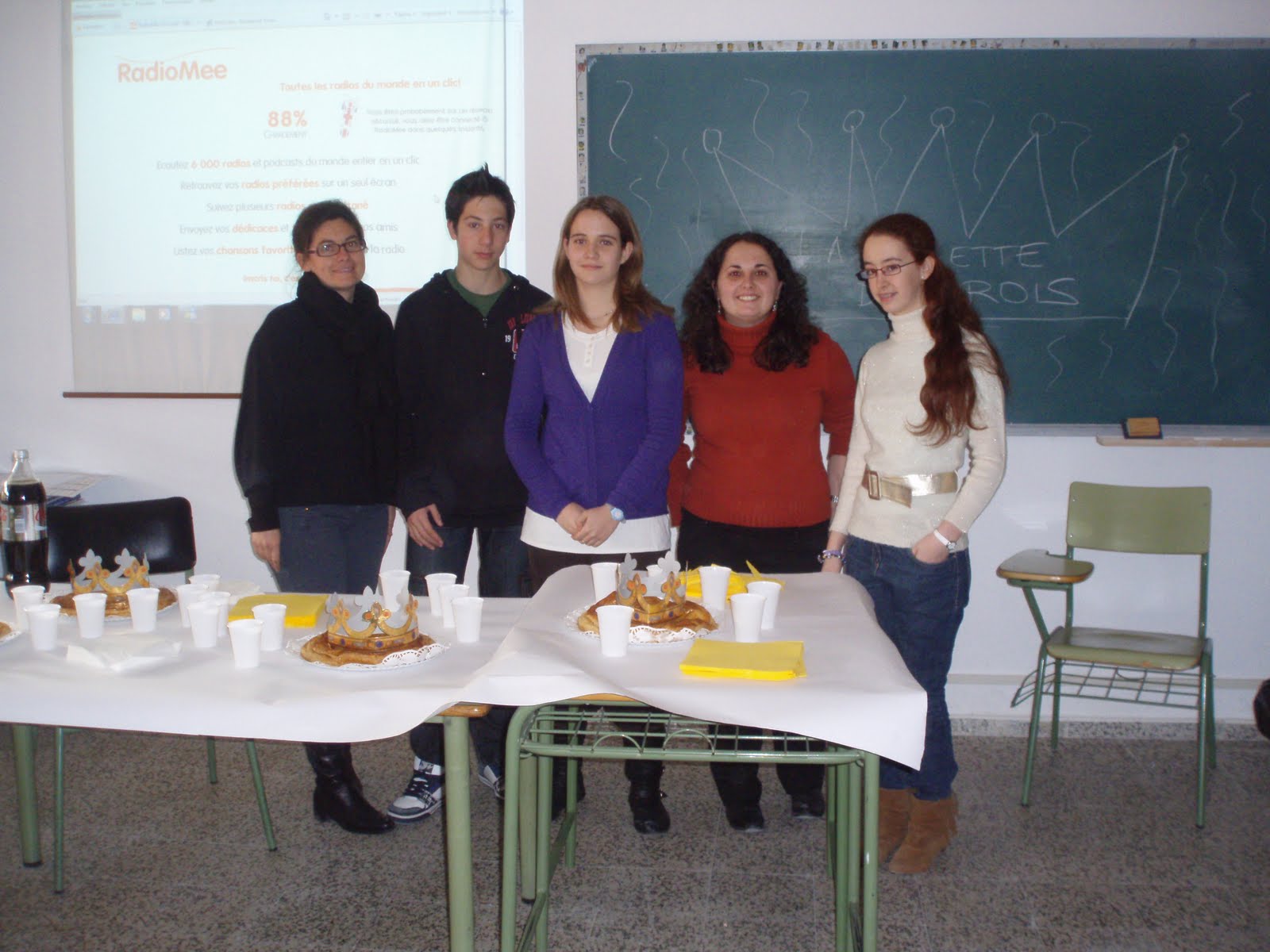 Mardi 18 janvier a eu lieu la Fête de la Galette des rois à la Salle de projections de l'IES Conde de Orgaz. Tous les élèves de français du collège ont eu l'occasion de déguster le dessert traditionnel du mois de janvier en France, la Galette des Rois. Les élèves qui ont trouvé la fève (petit objet de porcelaine) dans sa portion sont devenus les rois de la fête.
