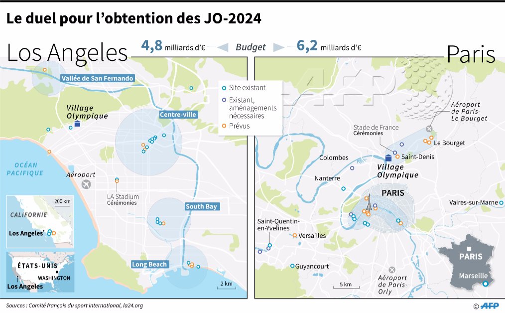 En février 2017, Budapest a retiré sa candidature pour les JO 2024, Paris et Los Angeles restent donc les deux seules villes encore en lice pour organiser les Jeux Olympiques 2014.